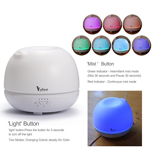 ULTRA-LONG USE TIME. Vafee 500 ml model Ultrasonic Aroma Essential Oil Diffuser can be used continuously up to 15 hours. Automatically shut off when water runs out. Besides, It produces more mist than other similar essential oil diffusers.