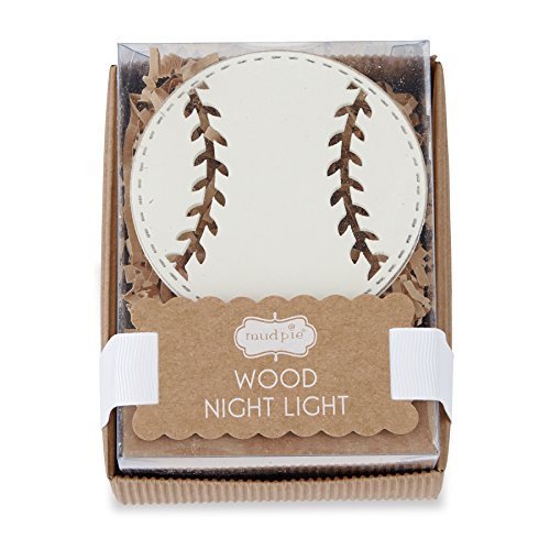 Mud Pie Night Light Nursery Decor, Wood Baseball, White