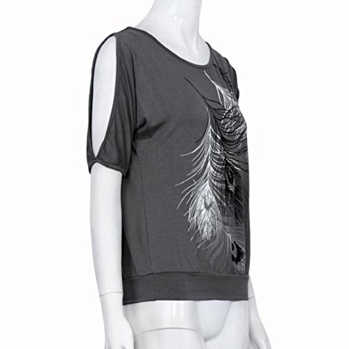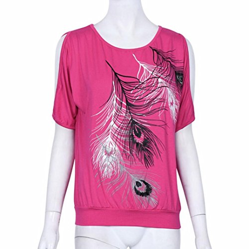 -. Title : T shirt Damen Kolylong Frauen weg von der Schulter Feder Druck Muster Jumper Tops T-Shirt