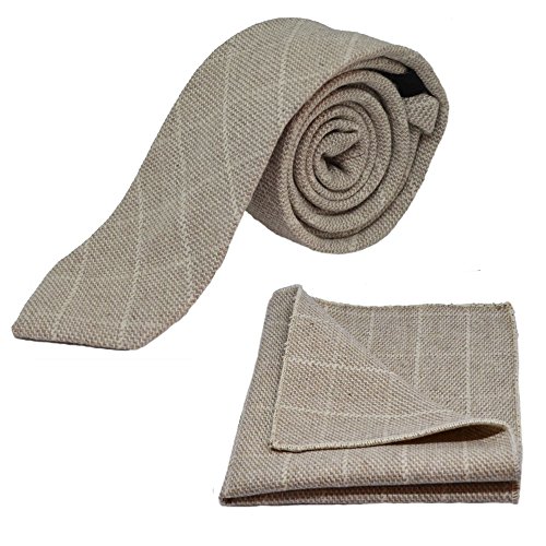 Stylish beige check tie and pocket square set in a premium birdseye fabric. Tie measures 7cm at the widest point. Pocket Square measures approximately 25cm x 25cm. Forms part of the King Priory Geometric Collection. Matching bow tie also available. 0