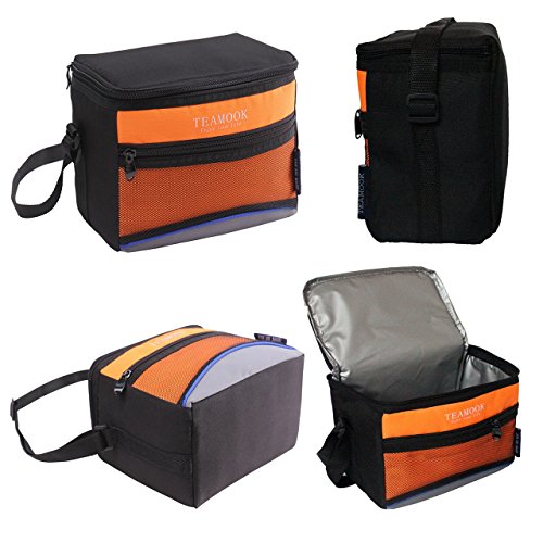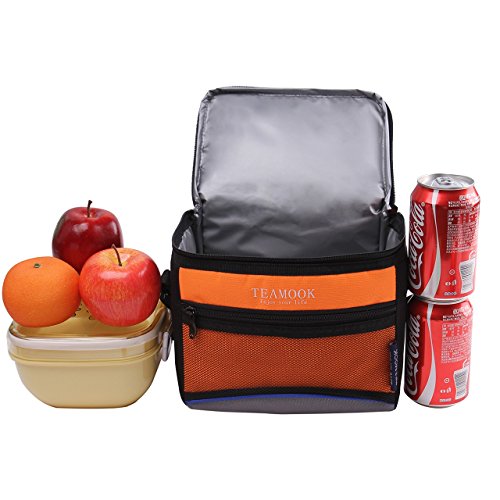 TEAMOOK Insulated Lunch Bag Tote Orange Food Handbag lunch box with Shoulder Strap For Men ,Women and kids,5-Liter