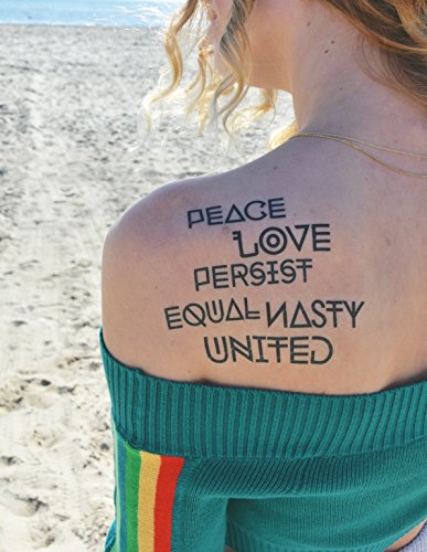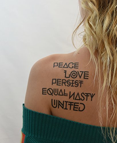 Our Women's March, Resistance themed tattoo set includes the 6 key words that represent the strength and support we all need to continue to create progress in a very volatile political climate. Wear as individual tattoos or create your own custom tattoo by grouping the words together. Looks amazing on the wrist, ankle, arm, chest and back. Tattoos are waterproof once applied and will last 1-3 days depending on placement and care.Feature
