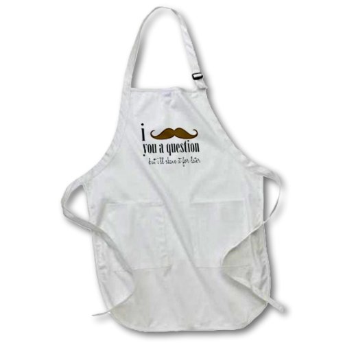 3dRose apr_110375_1 I Mustache You a Question Hipster Humor Art Full Length Apron with Pockets, 22 by 30", White