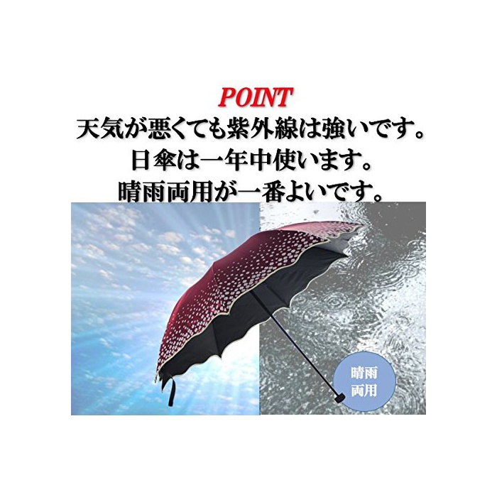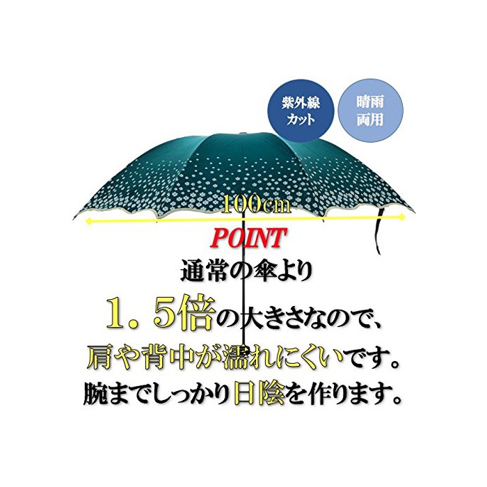양산 양용 타입입니다.차광율100%,자외선:UPF>50 .T(UVA)AV>5% びにくく、く、折れにくい丈夫な設計となっております。