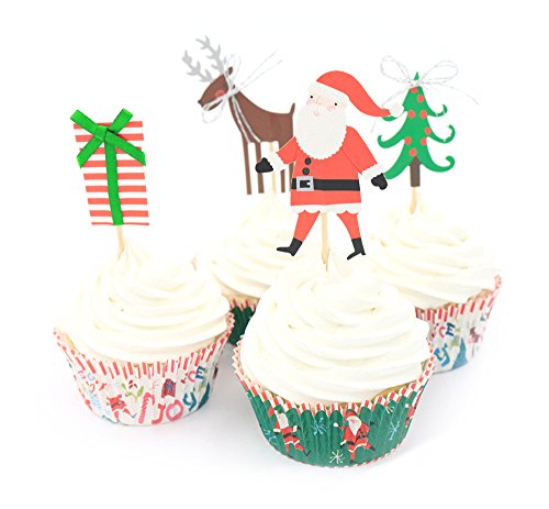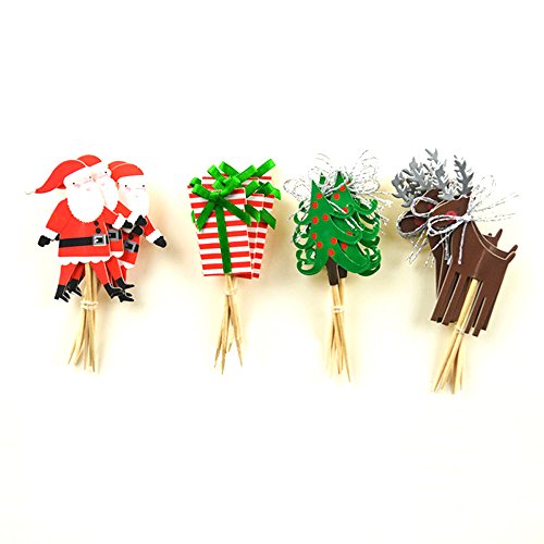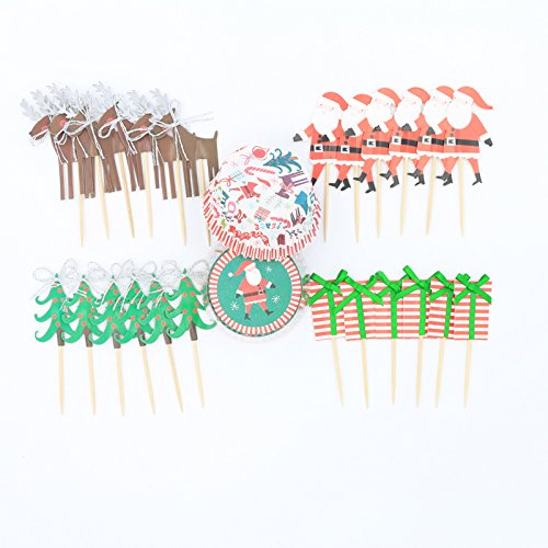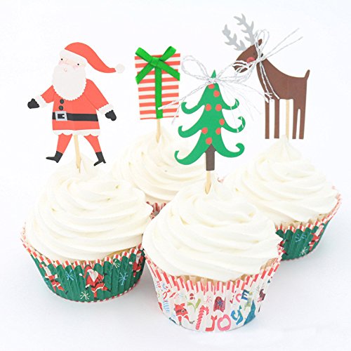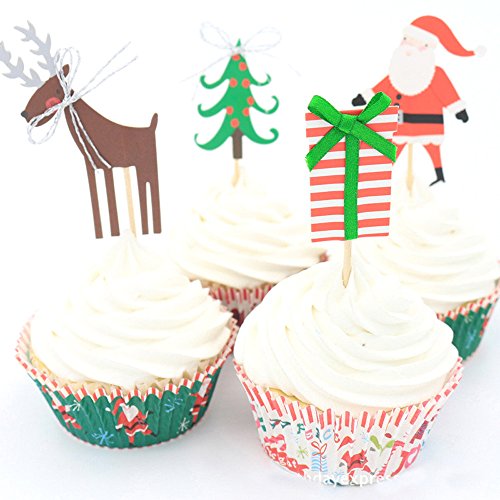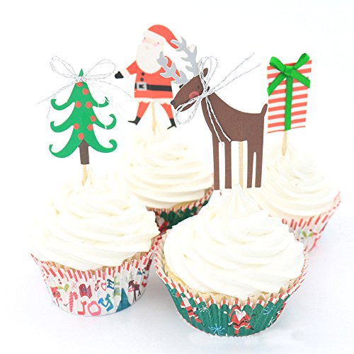 Misula 24pcs Christmas Santa Claus Trees Elk Cupcake Topper Picks Home Party Decor Wedding Decoration Party Favors