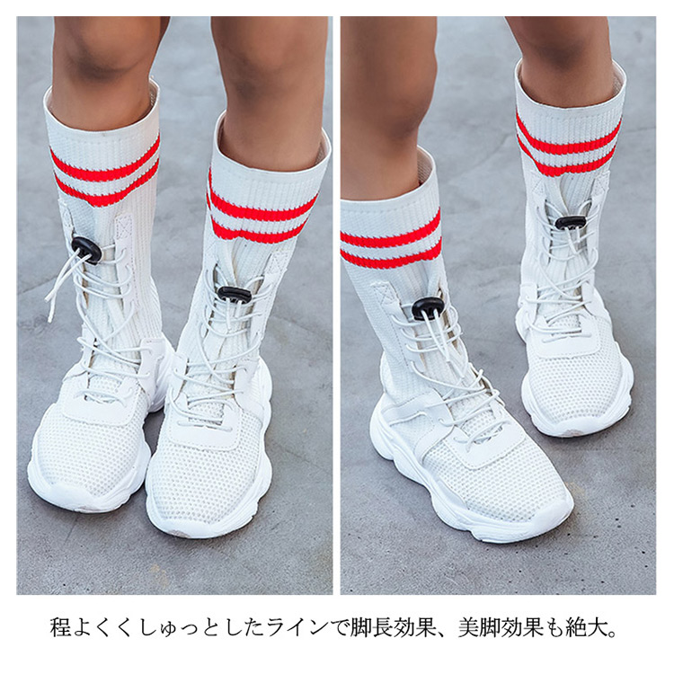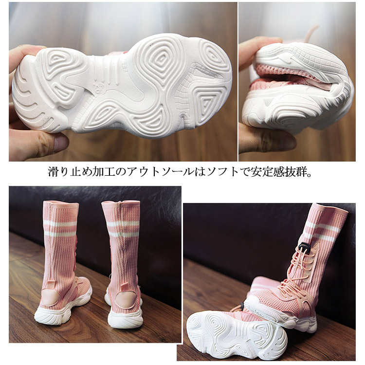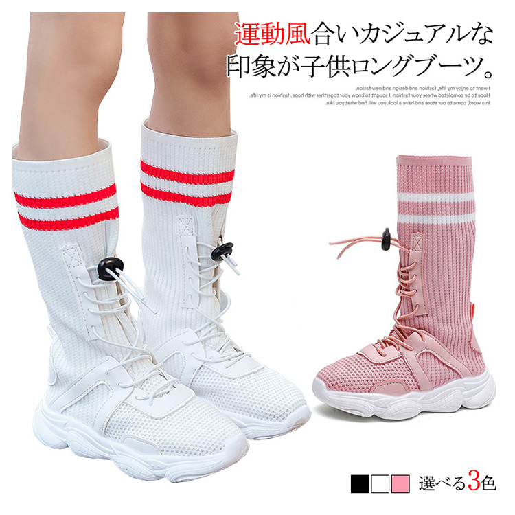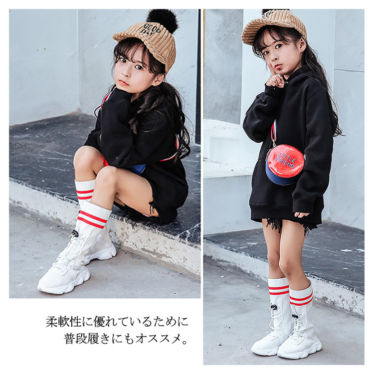 | 運動風合いカジュアルな印象が子供ロングブーツ。柔軟性に優れているために普段履きにもオススメ。ショートパンツはもちろん、スキニーなどで合わせやすい。程よくくしゅっとしたラインで脚長効果、美脚効果も絶大。 | |