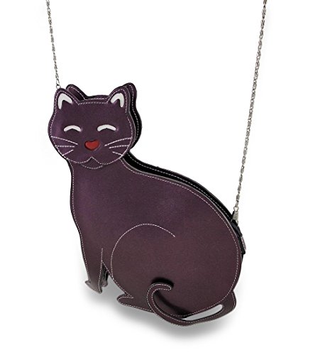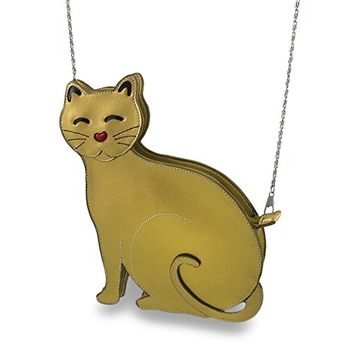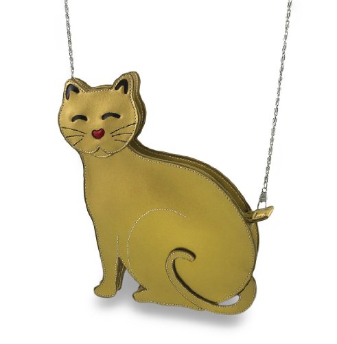 Studio : Zeckos Publisher : Zeckos Product Description Why let the cat out of the bag when the cat can BE the bag! This fun cat shaped purse features a metallic finish, a removable 46 inch long byzantine chain strap providing a 22 inch (56 cm) drop, sleepy eyes and a curly tail! Made from vinyl, is secures with a zipper that opens to a black polyester lined interior with a slip pocket perfect for spare change and keys. The bag measures 10 inches (25 cm) high, 8.5 inches (22 cm) wide and 1 inch (3 cm) deep, and is a must-have accessory for any fashionista! It`s great for a lunch date, a night on the town or a quick trip to the store, and makes a wonderful gift any cat lover is sure to adore! 0