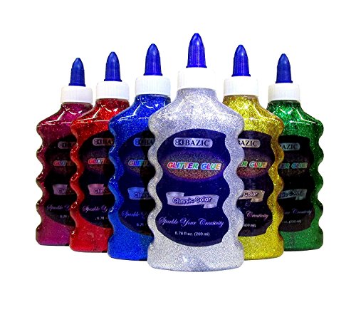 Basic 6 Color Glitter Glue Set, 6.7oz - 200 ml Bottles (Green, Gold, Red, Silver, Blue, and Purple)