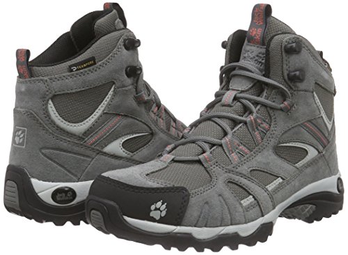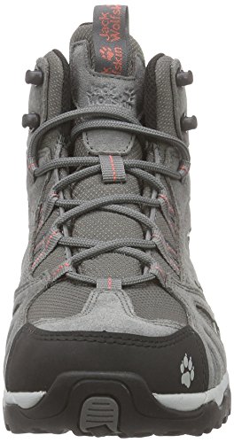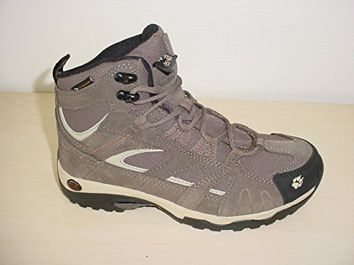 Jack Wolfskin VOJO HIKE MID TEXAPORE. Knöchelhoher, wetterfester Damen-Wanderschuh mit Texapore Membran; wasserdicht und atmungsaktiv; robuster Schaft aus strapazierfähigem, wasserabweisendem Suedeleder und ebenfalls wasserabweisendem Mesh; schnelltrocknendes Circuliner Textilfutter; dämpfende EVA-Mittelsohle; hochgezogener Sohlenrand an der Ferse; gummierter Spitzenbesatz zum Schutz von Schuh und Fuß in unwegsamem Gelände; Traction Sohle aus abriebfestem Gummi mit griffigem Profil.Feature