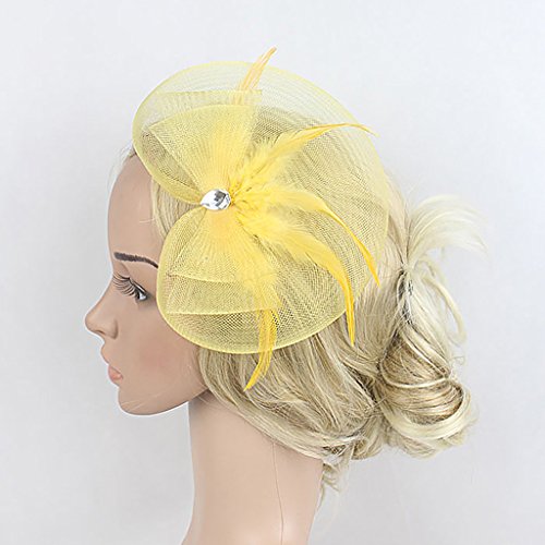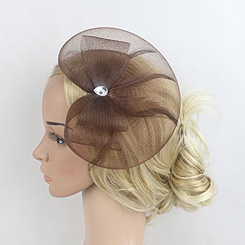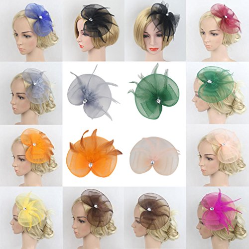 Description: - Vintage style woman fascinator headdress, with feather decoration. - Stunning hair accessory for fancy dress costumes. - Great for wedding, cocktail Party, banquet, derby race, church, stag night party and any other occasions. - With clips attached on the bottom, easy for you to wear. - One size fits for all. Specification: - Material: Mesh, feather, crystal rhinestone - Total Size: approx.18.5 x 15 x 4 cm/ 7.28 x 5.91 x 1.57 in Package Includes: 1 Piece Fascinator Headdress Note: 1. Please allow 1-3 mm error due to manual measurement. 2. Color might be slightly different due to the color calibration of each individual monitor. 0 |