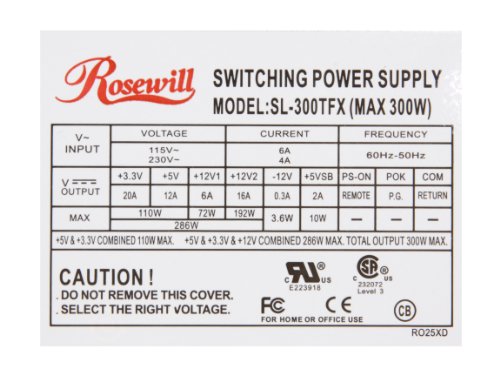 Rosewill Power Supply TFX12V 300W Power Supply TFX12V 300 Power Supply SL-300TFX