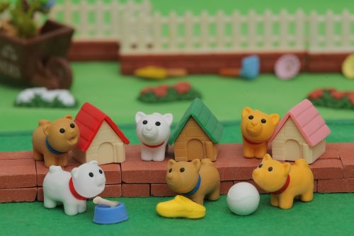 Iwako 6 Cute Small Puppy Dog with stuff Japanese Erasers (6 sets) NEW!!