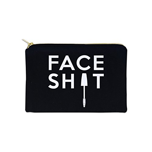 Face Sht Funny 12 oz Cosmetic Makeup Cotton Canvas Bag - (Black Canvas)