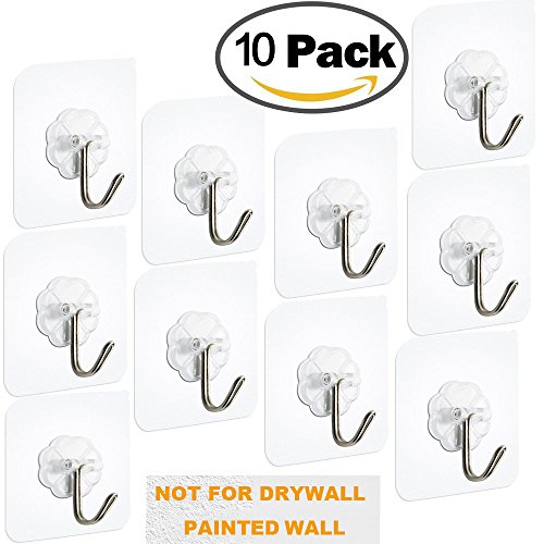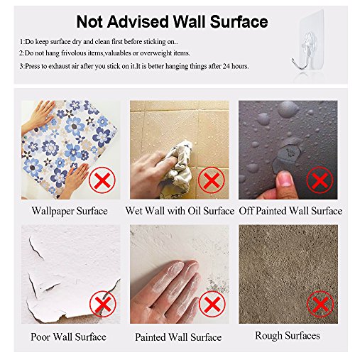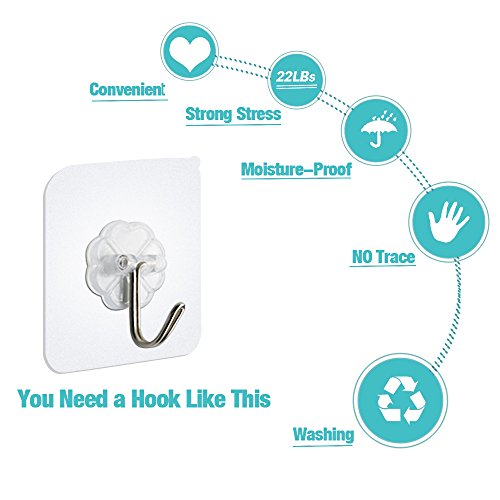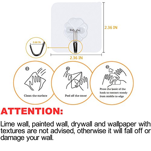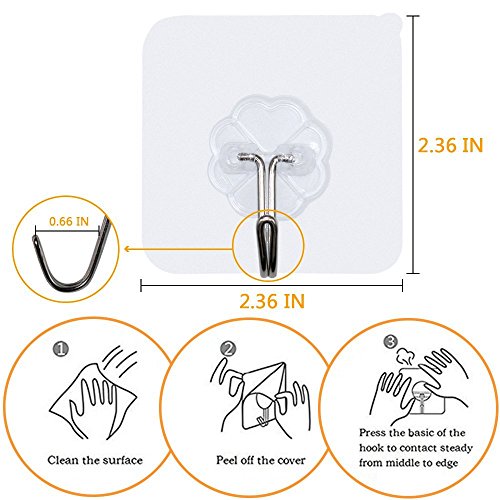FOTYRIG Wall Hooks, Heavy Duty Hooks Adhesive Hooks Transparent Hook 180 Degree Rotating Without Nails, Waterproof and Oilproof for Pictures, Coats, Towels, Robes, Bags, Hats 22 Pounds (Max)-10 Packs Advantage over Others: Applied on smooth surface like glass,painted wooden,ceramic tile,marble,stainless steel,acrylic board,etc. More heavy duty.Max weight capacity is up to 22lb/10kg per hook. Larger adhesive base for firm sticky function. Easy to stick on and remove,can be moved at wish.Nail Free,No Trace,No Damage! Reusable and durable,waterproof and oilproof,high and low temperature resistant Kitchen,bathroom and home are available. Attention: Max Bearing Weight:22lb, Average Bearing Weight:17.64lb. Installation Tips: Do keep surface dry and clean first before sticking on. Peel off the cover.Make sure the position to stick on one time. Squeeze the air out from centre to side to make the hook stick on the wall completely. HANG ITEMS 12 HOURS LATER for BETTER and DURABLE EFFECT. Tips to Remove and Storage: Gently uncover one edge of the hook.Slowly tear down the sticky hook film vertically. Do not pull the hook directly to remove. Stick the cover on the hook base for storage. Do not hang frivolous items,valuables or overweight items. Please clean up the surface before reposition the hook. Lime wall,painted wall and wallpaper with textures are forbidden. Because it may damage the painted wall due to strong adhesive ability if you want to remove. Size:6*6*2cm Material:PVC Stainless Steel Package:10 Hooks 100% Quality and Money Back Gurantee(Damage caused by non-artificial). 0 |