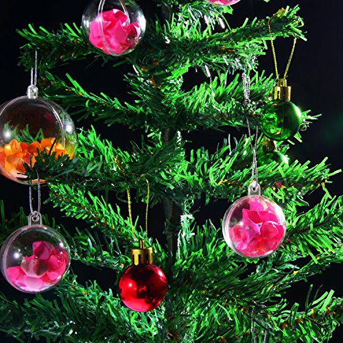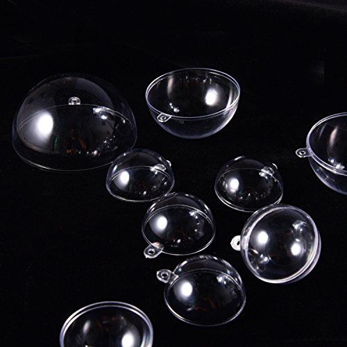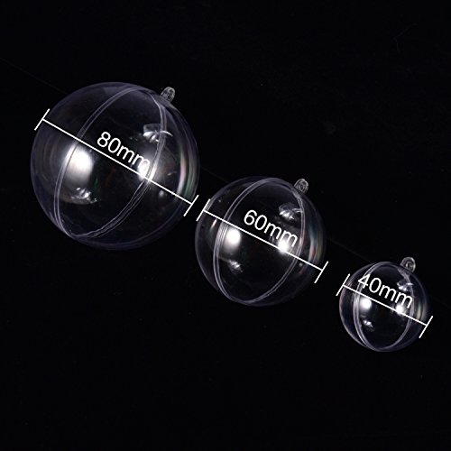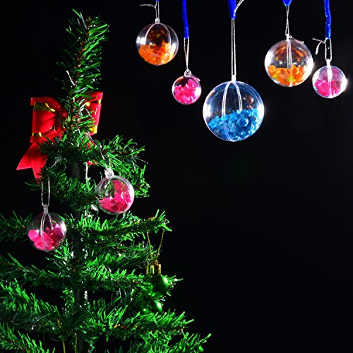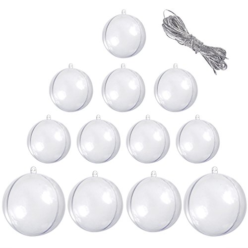 BBTO Clear Plastic Fillable Ornaments Ball, Assorted Size, 40 mm, 60 mm, 80 mm, 12 Pieces, with 5 m Silver Thread