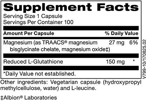 Supplies 150 mg of reduced L-glutathione per vegetarian capsule.