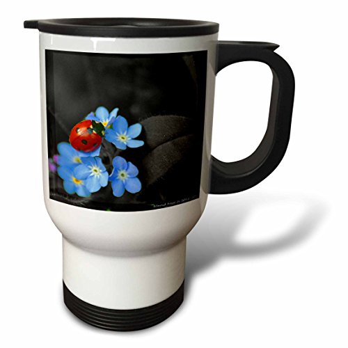 3dRose tm_214356_1 Ladybug and Forget Me Not Flowers-Travel Mug, 14 oz, Stainless Steel, White