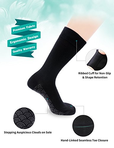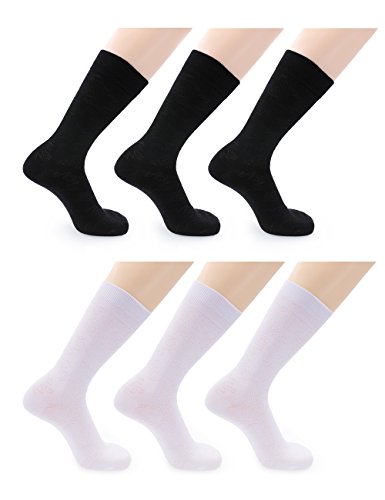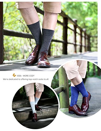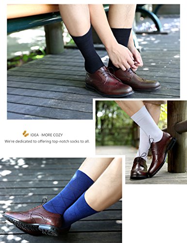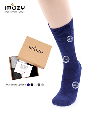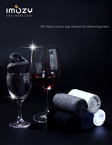 -. Binding : Apparel -. Brand : IMOZY -. Department : mens -. Feature : ❀ Odor Resistant: The set of socks are composed of naturally anti-bacterial bamboo fibers which will reduce foot odor almost 4 times more than cotton socks, thus it will also keep your feet cool in summer and warm in winter, especially great with sensitive skin / ❀ Silky Touch, Soft: The mid-calf socks are made from premium bamboo fabrics, which ensures extremely smooth feeling. If you have ever touched cashmere or silk, the softness is very similar. The Softness is what makes these socks so much more comfortable than regular ones / ❀ Seamless Toe & Reinforced Heel: Many people wear socks inside out because of the annoying seems. Our dress bamboo socks are completely seamless construction which will reduce abrasion on toe and provides a smooth, performance fit to assure feet no irritating, no blisters. Additionally, reinforced heel also brings superior comfort and maximum durability / ❀ Classic & Versatile Design: The men's crew style socks come with a perfect mix of colors and argyle patterns, which are classic and approP.R.Iate for work or business occasions and your selection throughout the week is never boring. Whether you're dressing up for a casual event, or going to work, a party, or a dance club, these socks are the perfect choice / ❀ A Custom Fit: Socks size 10-13 fits U.S. men shoes size 6-12. Normally reach the middle-calf, approximately 10" height. Package Includes: 6 pairs of socks (white*2, black*1, dark gray*1, light gray*1, dark blue*1)+1 customized after-sale service card -. IsAdultProduct : 0 -. ProductGroup : Apparel -. ProductTypeName : SOCKSHOSIERY -. Title : Men's Crew Socks, Cotton Bamboo Dress Socks, Mid-Calf, Seamless Toe, Colorful Patterned, 6 Pack, Size10-13