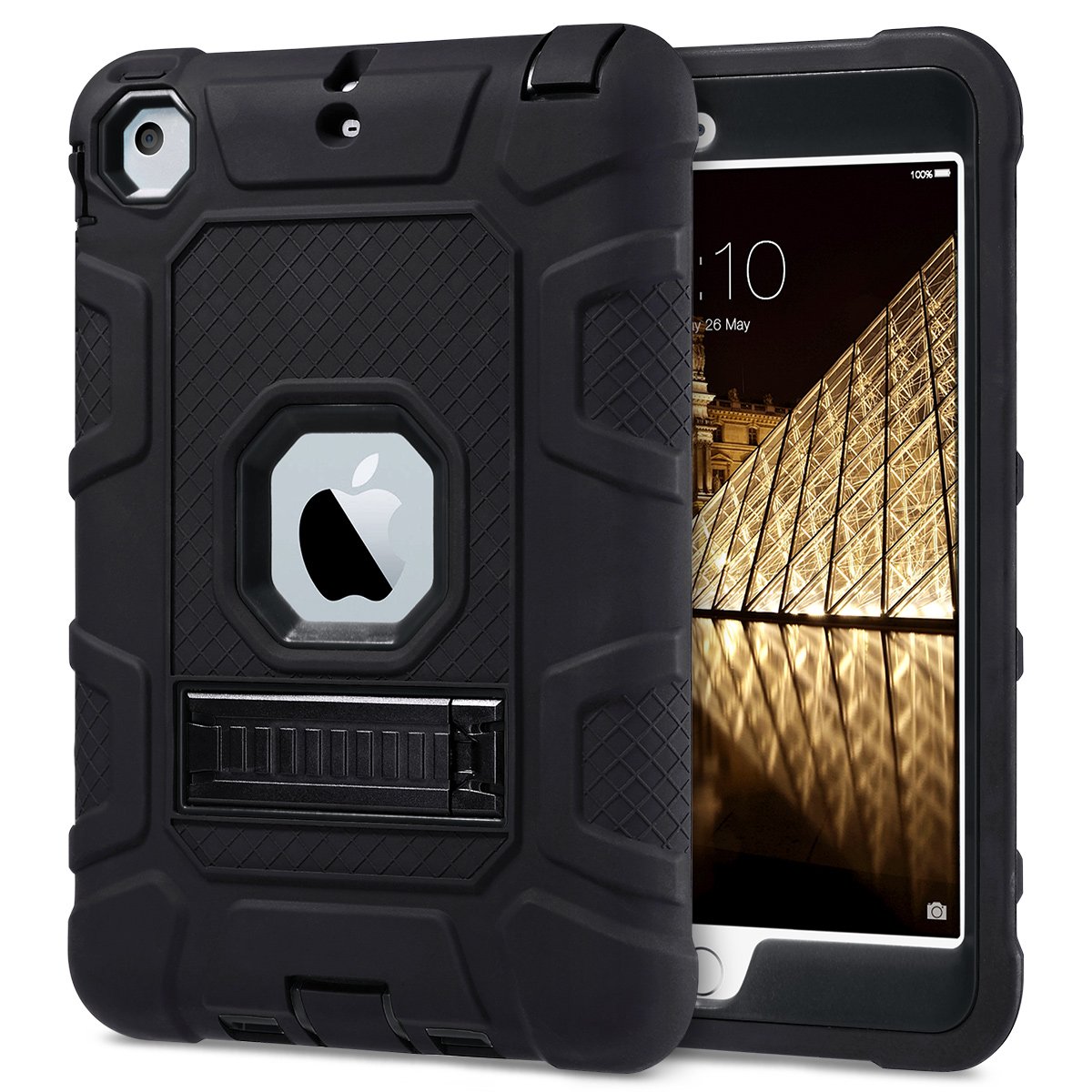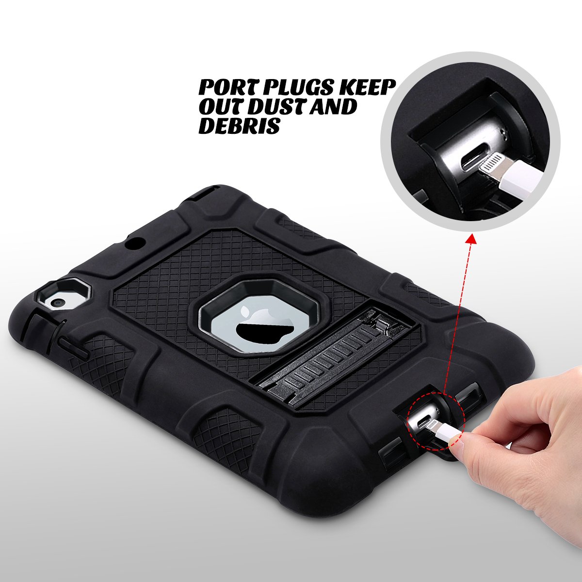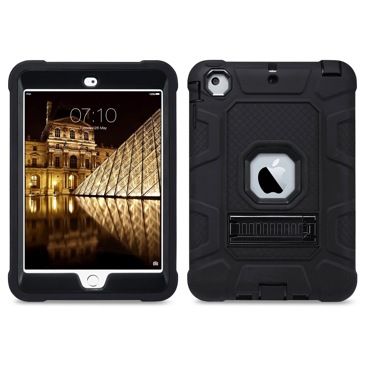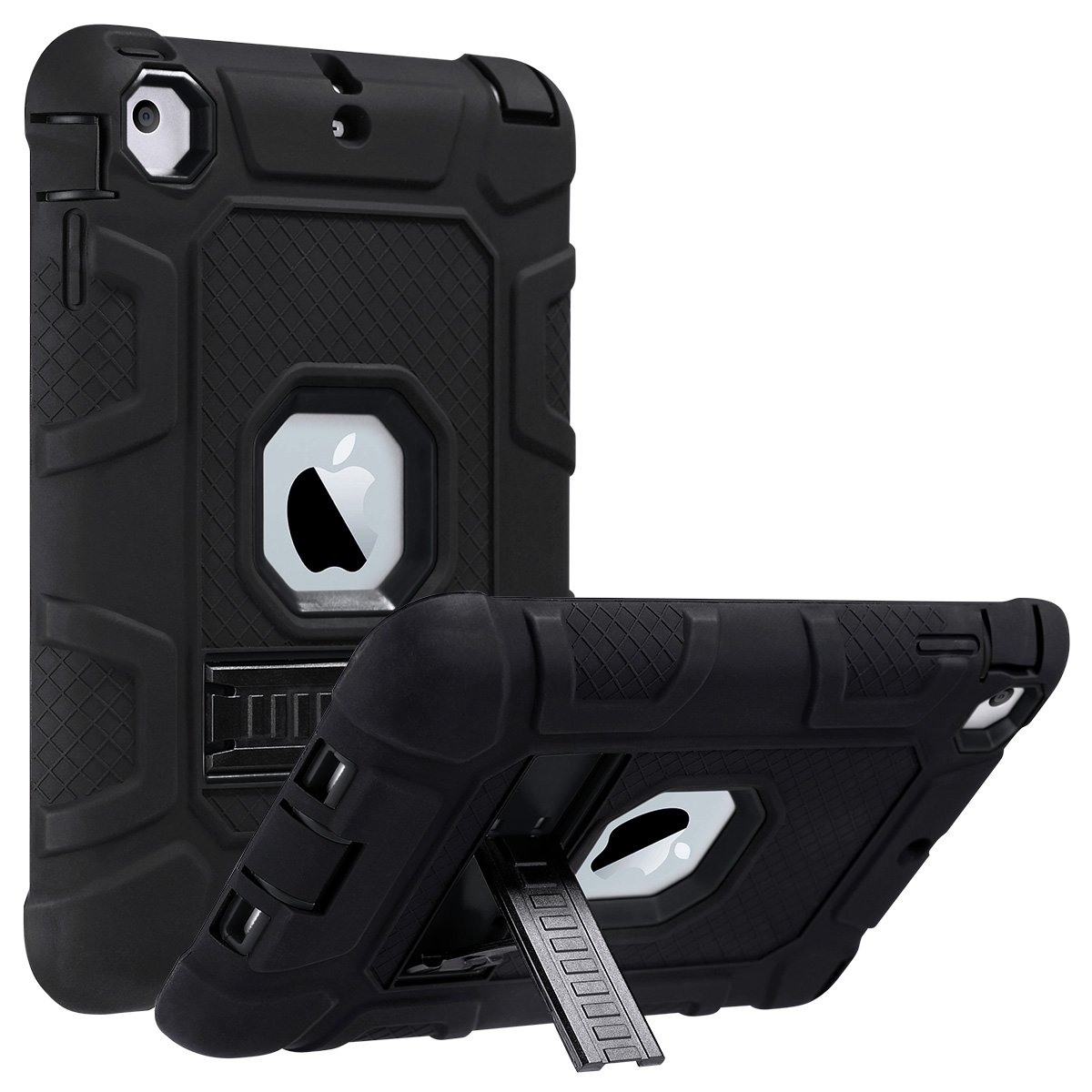 ULAK iPad Mini 1/2/3 Case Hard PC back cover and soft TPU Impact absorption bumper Combination Triple structure overall protection Dustproof anti shock iPad Mini 1/2/3 Special cover (black / black)