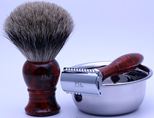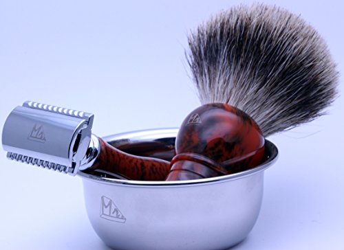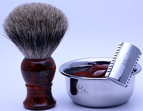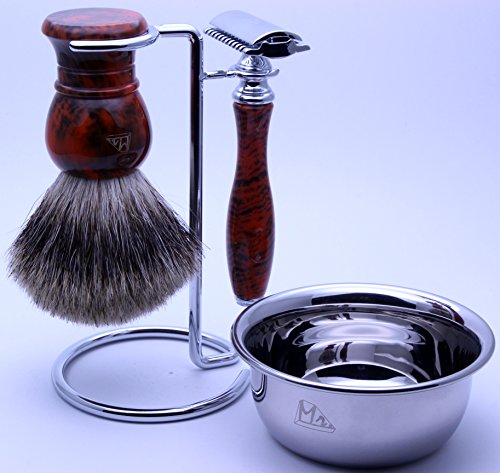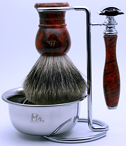 Mr® Shaving 4 pieces Set with Safety Razor,Bowl,Stand,Hand Crafted 100% Pure Badger Shaving brush.Great Birthday Gift Idea for Your man,...