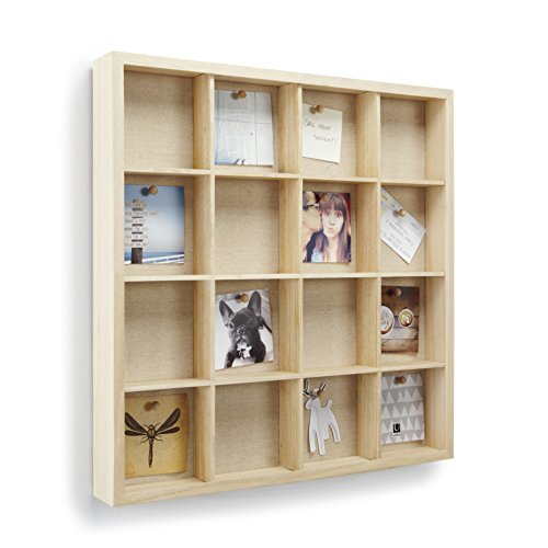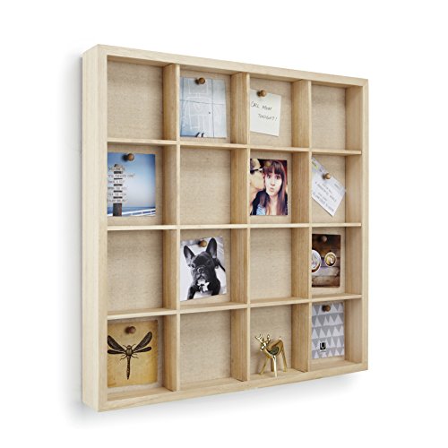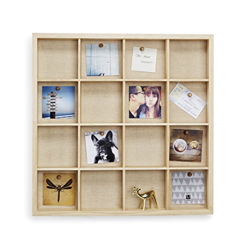 Modelled after our successful Gridart photo display, gridlock photo and memento display by Umbra has sixteen wooden cubbies to hold photos, mementos and trinkets. Made of wood, gridlock has a linen backing to pin memorabilia onto it, 16 wooden tacks are included. Overall, gridlock measures 22-Inch by 22-Inch by 2-1/2-Inch . Each cubby measures 5x5-Inch . Designed by Sung Wook Park and Laura Carwardine for Umbra- original, modern, casual, functional and affordable design for the home.Feature
