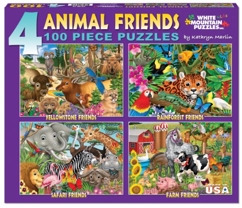 -. Binding : Toy -. Brand : White Mountain Puzzles -. Department : Primary School Puzzles -. EAN : 0724819256174 -. Feature : Animal Friends includes four 100 piece jigsaw puzzles in one box. / Artist Kathryn Marlin has spent the course of her career as a free-lance artist, focusing on children. / Every White Mountain Puzzle is proudly manufactured in America with a 100% customer satisfaction guarantee. / All our puzzles contain unique interlocking pieces that are made of sturdy blue chipboard on recycled paper. / 100 piece puzzles measure 11"x15" -. IsAdultProduct : 0 -. ItemPartNumber : 724819256174 -. Label : White Mountain Puzzles, Inc. -. Manufacturer : White Mountain Puzzles, Inc. -. Model : 1022 -. MPN : 724819256174 -. PackageQuantity : 1 -. PartNumber : 724819256174 -. ProductGroup : Toy -. ProductTypeName : TOYS_AND_GAMES -. Publisher : White Mountain Puzzles, Inc. -. Studio : White Mountain Puzzles, Inc. -. Title : White Mountain Puzzles Animal Friends 4-in-1 Box - 100 Piece Jigsaw Puzzle -. UPC : 724819256174 -. Warranty : No Warranty