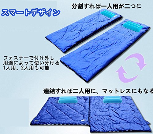 원본상품명: SAMCAMEL 2人用 ?袋 枕付き シュラフ 封筒型 連結 解? 最低使用?度 -10度 車中泊 防災 厚手 洗える ブル?
