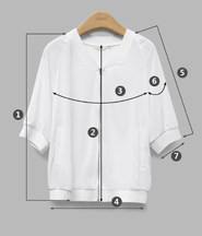 | Size | ①Font | ②Back | ③Bust | ④Hem | ⑤length of sleeve | ⑥Arm sleeve | ⑦Cuff | ||