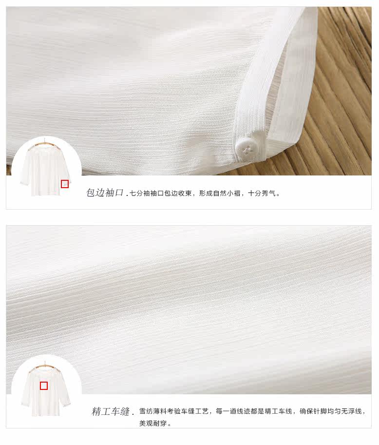 | 蕾丝拼接七分袖雪纺衫 | | 产品款号: | 51160002 | | 产品克重: | 0.11kg