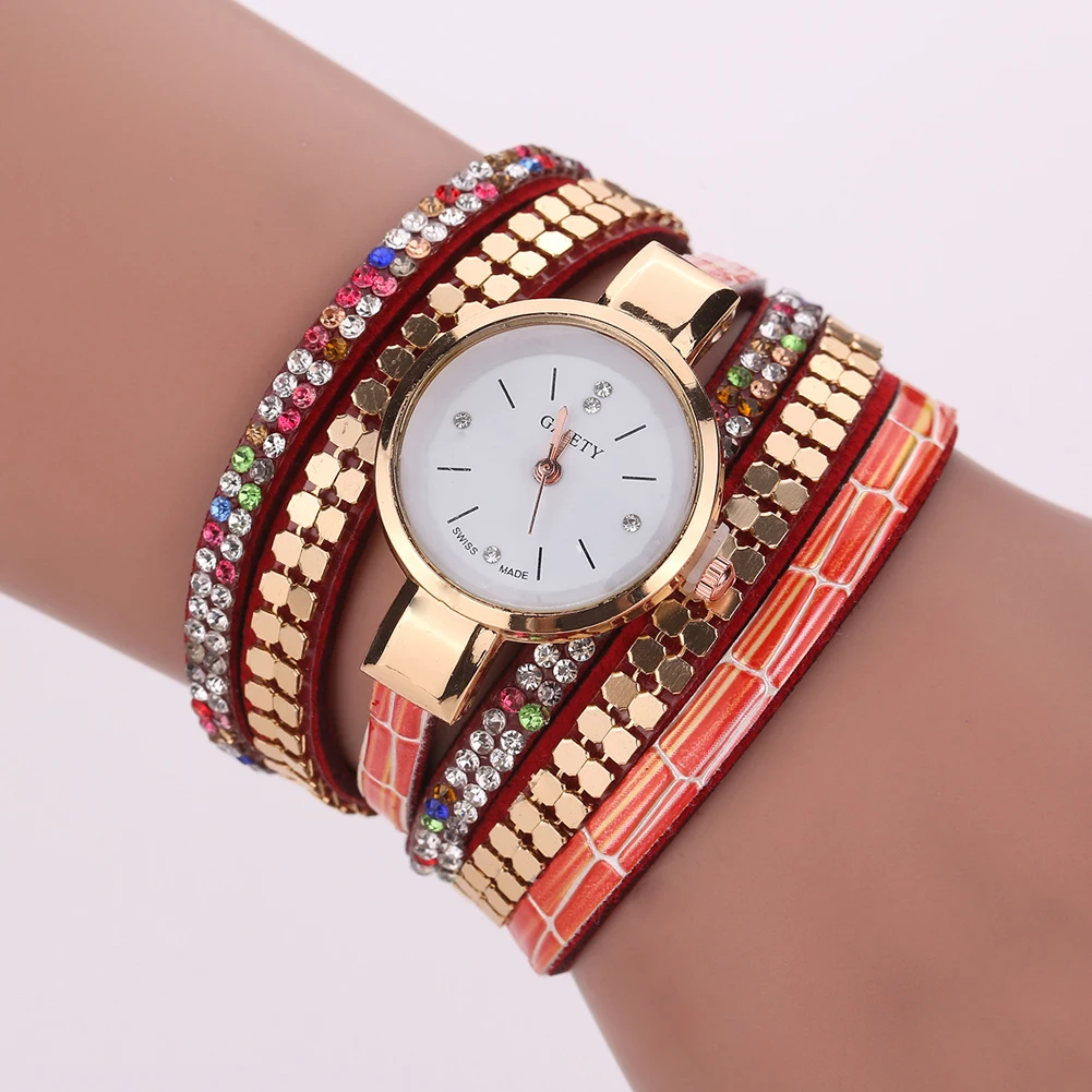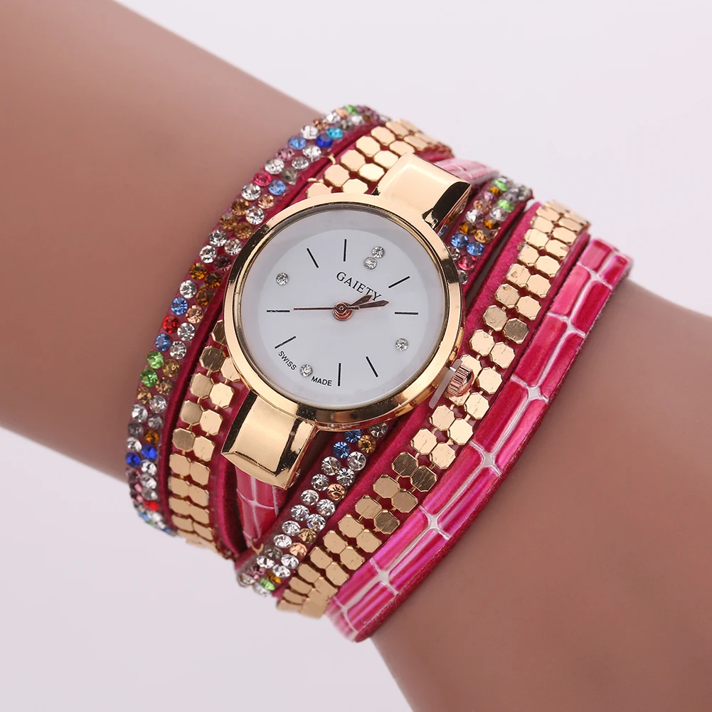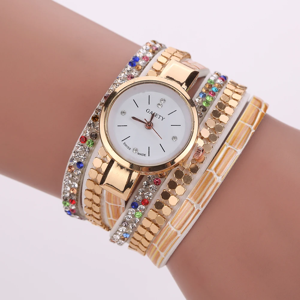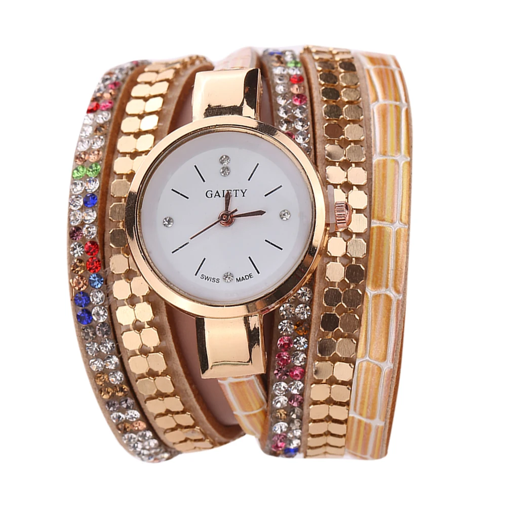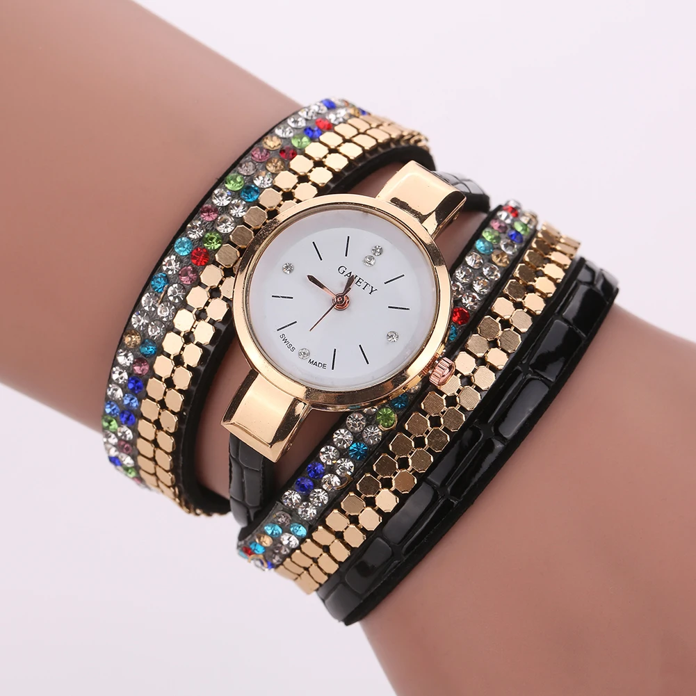 새로운 럭셔리 팔찌 시계 여성 캐주얼 석영 시계 라인 석 PU 가죽 여성 드레스 시계 패션 골드 시계