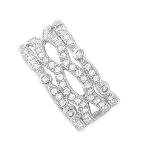 -. Title : Sterling Silver Cz Wide Stacked Statement Ring (Size 4 - 9)