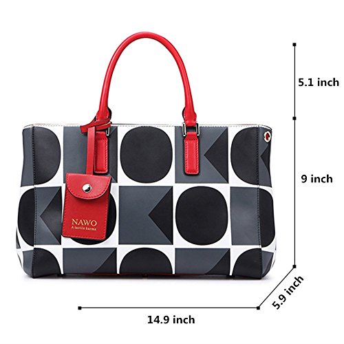 -. Title : NAWO Women's Leather Designer Handbags POP Art Style Tote Shoulder Bags Grey
