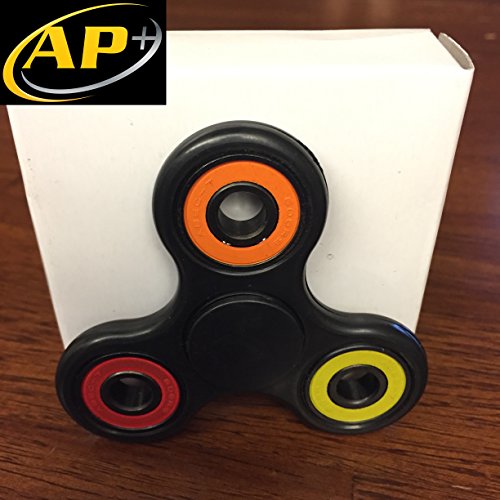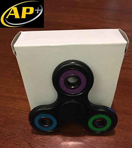 -. Title : AP Plus Premium Black Tri-Spinner Fidget Toy, NOT MADE WITH A 3D P.R.INTER, Relieve Stress, Improve Thinking, Help ADHD, Spin in Hand or on Table, Various Colors