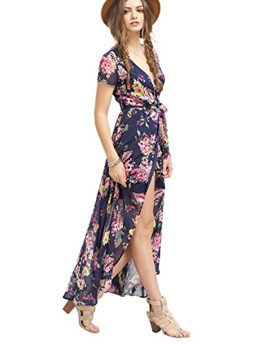 -. Title : Milumia Women's Vintage Floral P.R.Int Split Wrap Maxi Dress