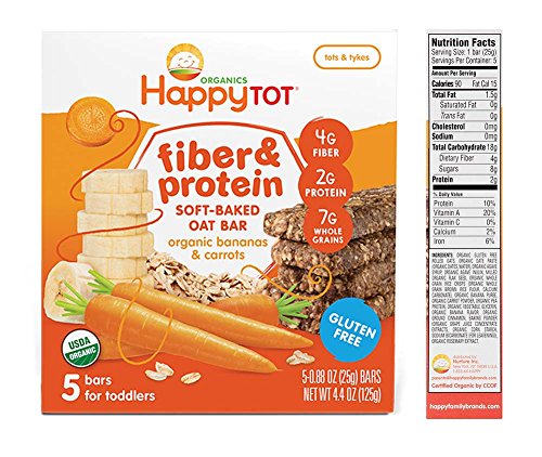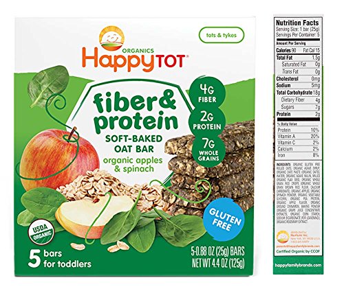 Happy Baby Tot Fiber and Protein Organic Soft-Baked Oat Bar Bundle: 1 Box of Apples & Spinach, 1 Box of Bananas & Carrots(2 boxes total)