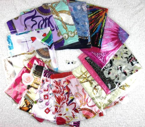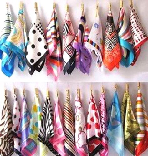 - Feature : Fashion and beautiful Scarf Wrap. / Material: Fiber/Silk / Size (approx): 50 cm (19 inch) x 50 cm (19 inch) / They are great for any occasion - be it for office wear, parties, casual wear, christmas etc / Color: There are different pattern print in the scarf,Not only show in the picture, I will sent the style to you by randomly depend on our stock
