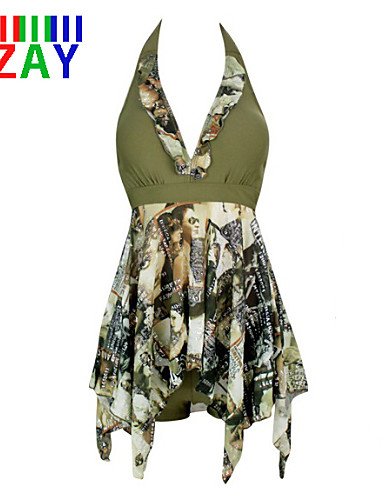 Title : SNEED-ZAY Women's Push-up Floral Halter One-pieces Beach Bikini Dress , army green-3xl , army green-3xl