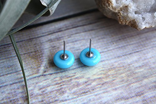 -. Title : Turquoise Earrings - Bright Turquoise Studs - Fused Glass