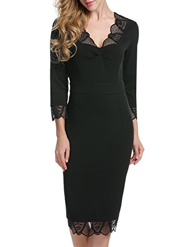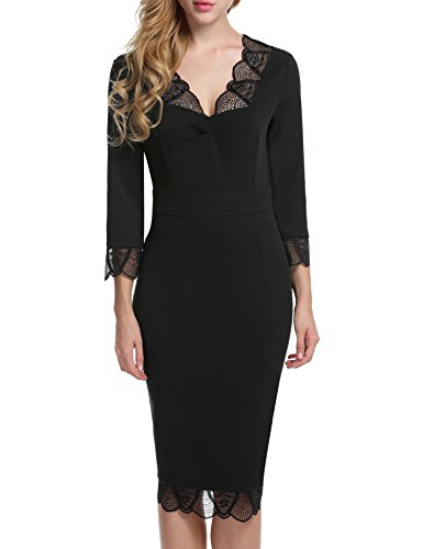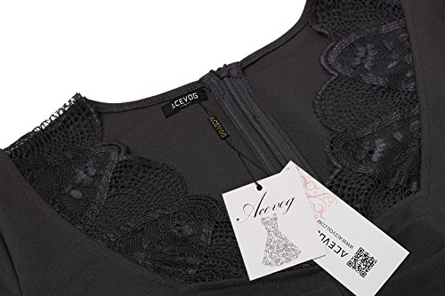 Title : Acevog Women's Elegant Floral Lace Long Sleeves Cocktail Bridesmaid Midi Dress (Large, Black)