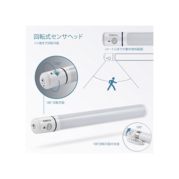 에너지 절약에 편리하게 사용 할 수 있는※AVANTEK제품은 구입 날씨12개월의 품질 보증에 옵니다.만일,불량과 같이 하면,부담없이 이쪽 출품자(설명서에 게재 된 메일 어드레스)에 연락 하십시오.※인감센서 라이트의 PIR센서기와 광센서기가 동시에 움직이고, 주변의 동작과 빛을 감지합니다.즉 낮 혹은 밝은 경우에 인간의 동작만(만큼,수록)을 감지해도 라이트가 오프로 합니다.어두울 때,사람이 오면 인감센서가 반응하고, LED라이트가 자동 점등,사람이 없어지면 약20 초다음에 자동 소등.자동 점멸이기 때문에,전력 소비를 절약,또한 배터리를 오래 가게 합니다.