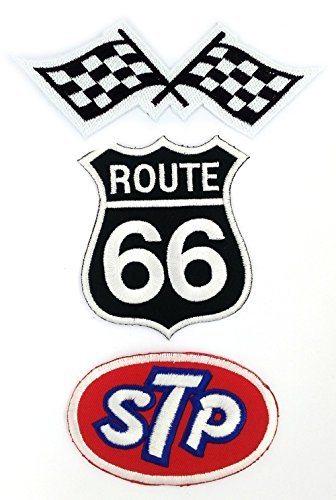-. Feature : Iron-On or Sew to Any Garment. Fabric embroidered patch that irons easily onto garments, bags, crafts, by using a household iron. / The patches are coated with a special glue that melts due to heat and thereby connecting well with the textiles. / 100% High Quality. Top Quality, Detailed Embroidery. Perfect for Jeans, Jackets, Vests, Hats, Backpacks, Scrapbooking and more! / Ironed-on Patches Will Not Come Off / Approx. Size : Racing Flag Patch ( 12 X 5 Cm.), STP Oil Patches ( 8.25 X 5.25 Cm.), Route 66 Patch ( 6.7 X 8 Cm.),