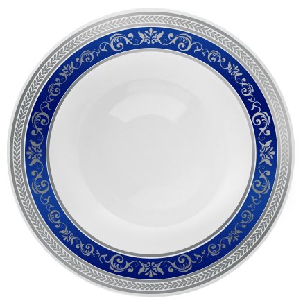 Posh Setting Royal Collection Combo Pack China Look White, Silver/Blue Plastic Soup Bowls (Includes 4 Packs of 7.5" Soup Bowls A total of 40 Bowls) Fancy Disposable Dinnerware