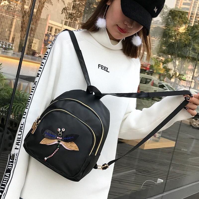 Fashion Women Dragonfly Pattern Travel Leisure Backpack Shoulder Bag