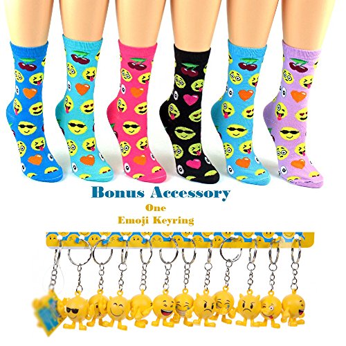 -. Title : Women's Teen Girls Novelty Ladies Emoji Crew Socks 9-11 With One Bonus Keyring