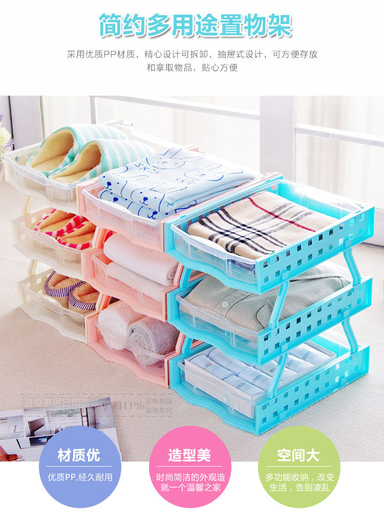 Environmental PP material, durable no smell, multi-layer can be superimposed, with a drawer box, the volume is moderate, does not account for space. Convenient storage