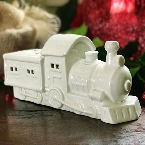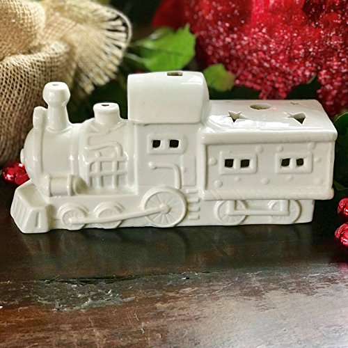 - CHUG ALONG together with the spirit of Santa Claus as you gaze at our North Pole Express Ceramic Candle Holder. Inspired by an old time steam engine, this detailed white porcelain locomotive has a classic cow catcher, smoke stack, snow plow, open windows, and more. Cute square and star air cut outs act as air vents at top, while open windows at the sides provide a glimpse inside as well as to allow the flickering candle light to glow outside.