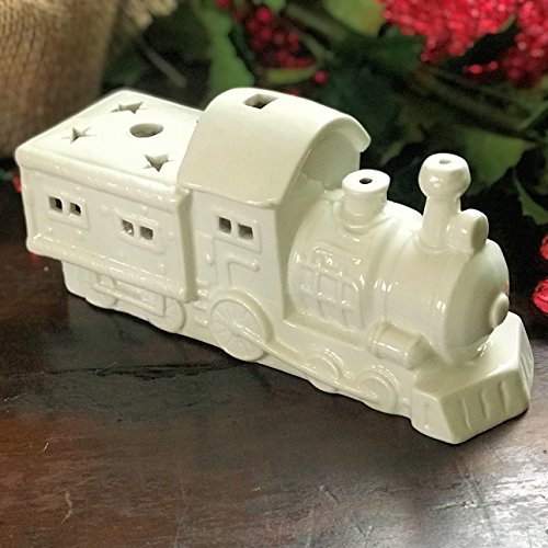 The North Pole Express Ceramic Candle Holder, Rustic Country Style, Porcelain, for 3 LED Tea Lights, 8 1/4 L", By Whole House Worlds
