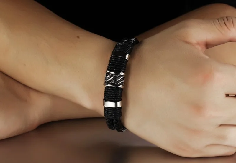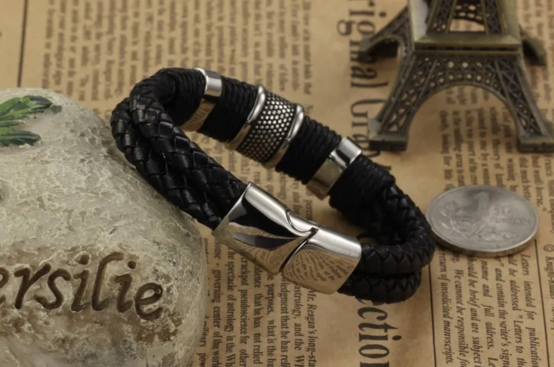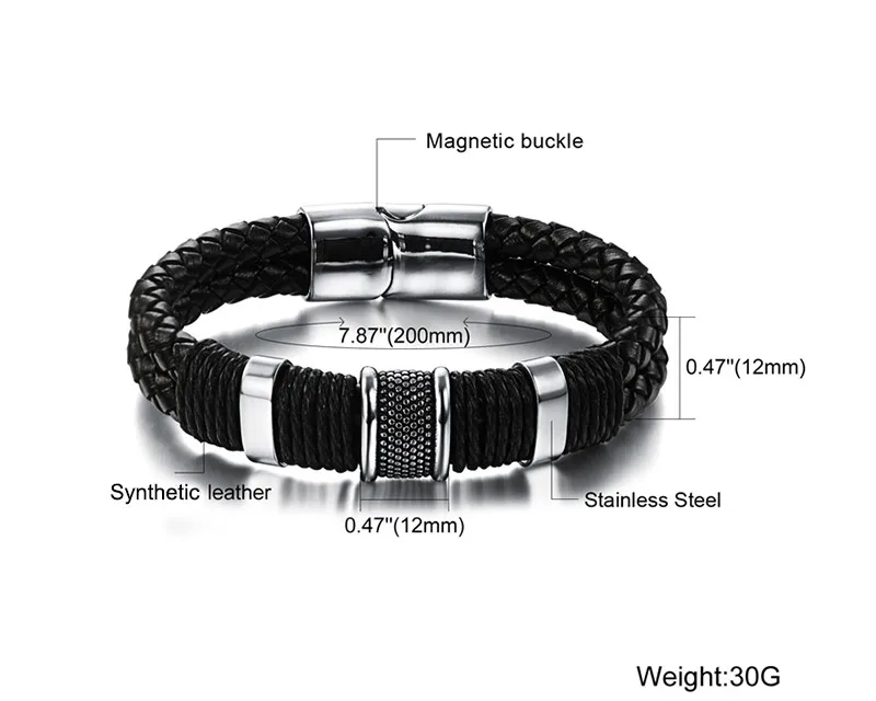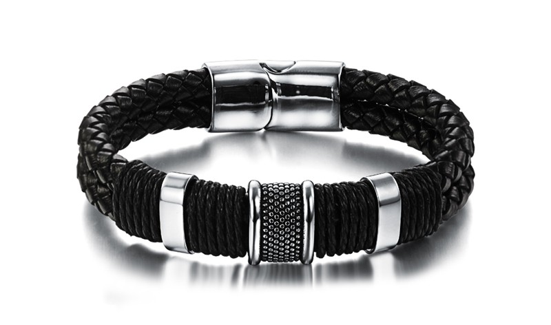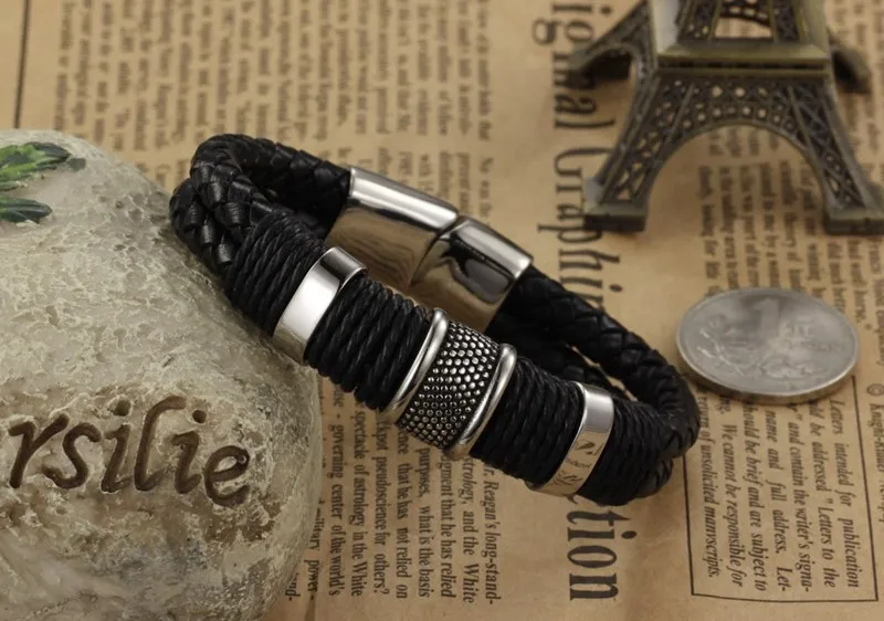 Black Leather Bracelet Stainless Steel Magnetic Clasps Bracelets Vintage Jewelry FASHION Charming Bracelets. Free Delivery Shipping Worldwide.