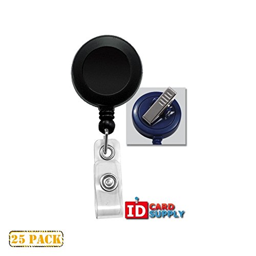 25 x Black Badge Reel With Clear Vinyl Strap & Swivel Spring Clip