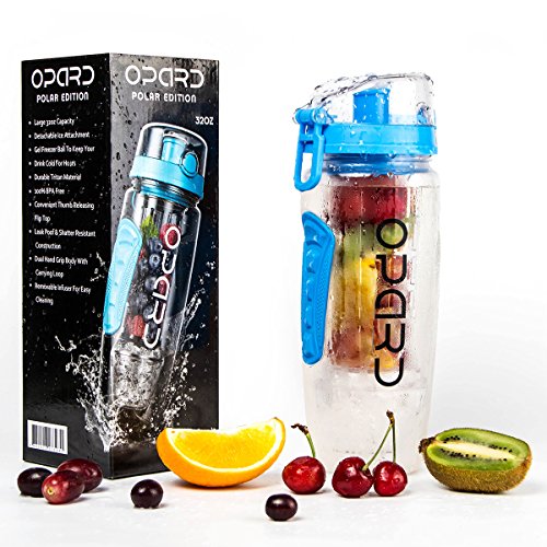 -. Title : Opard Infuser Water Bottle 32oz Insulated Narrow Mouth Sports Hydration Flip-Top Lid Tritan BPA-Free with Ice Gel and Fruit Infuser